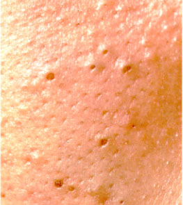 閉鎖面皰(白ニキビ):毛穴はふくらんでいるけれど閉じていて、全体が黄白色に見えます。